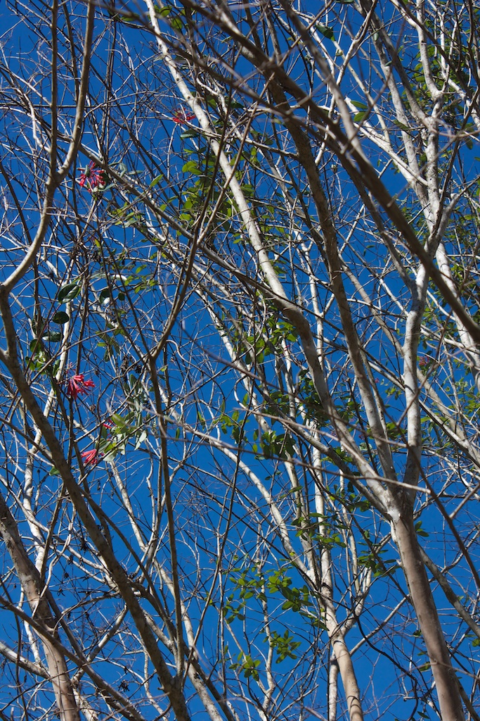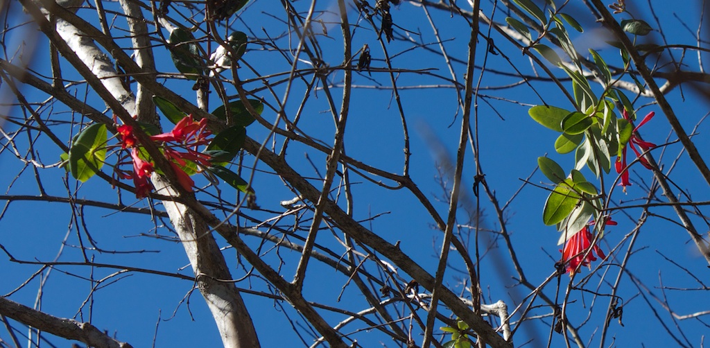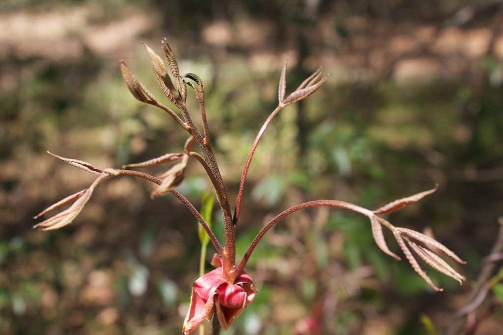 Red Buckeye (Aesculus pavia) flower buds on the West side of the front retention pond, near the driveway. These should be open by the time this comes out.